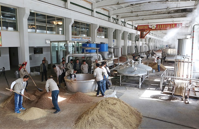 在汾酒酿造车间,游客可以看到汾酒生产流程中的糊化、发酵、装甑、蒸馏、流酒等主要工序。在发酵室,一个个硕大的“宜兴缸”整齐的排列在地平面以下,游客分别可以看到洗缸、原料入缸、复盖、酒醅出缸等操作,从而对汾酒的品质有更直观的了解和认识。