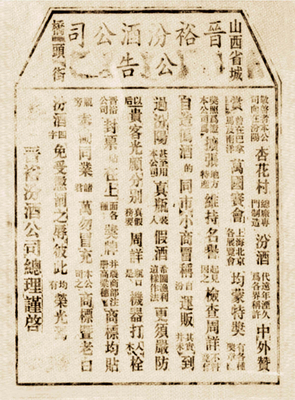 民国晋裕汾酒公司公告
