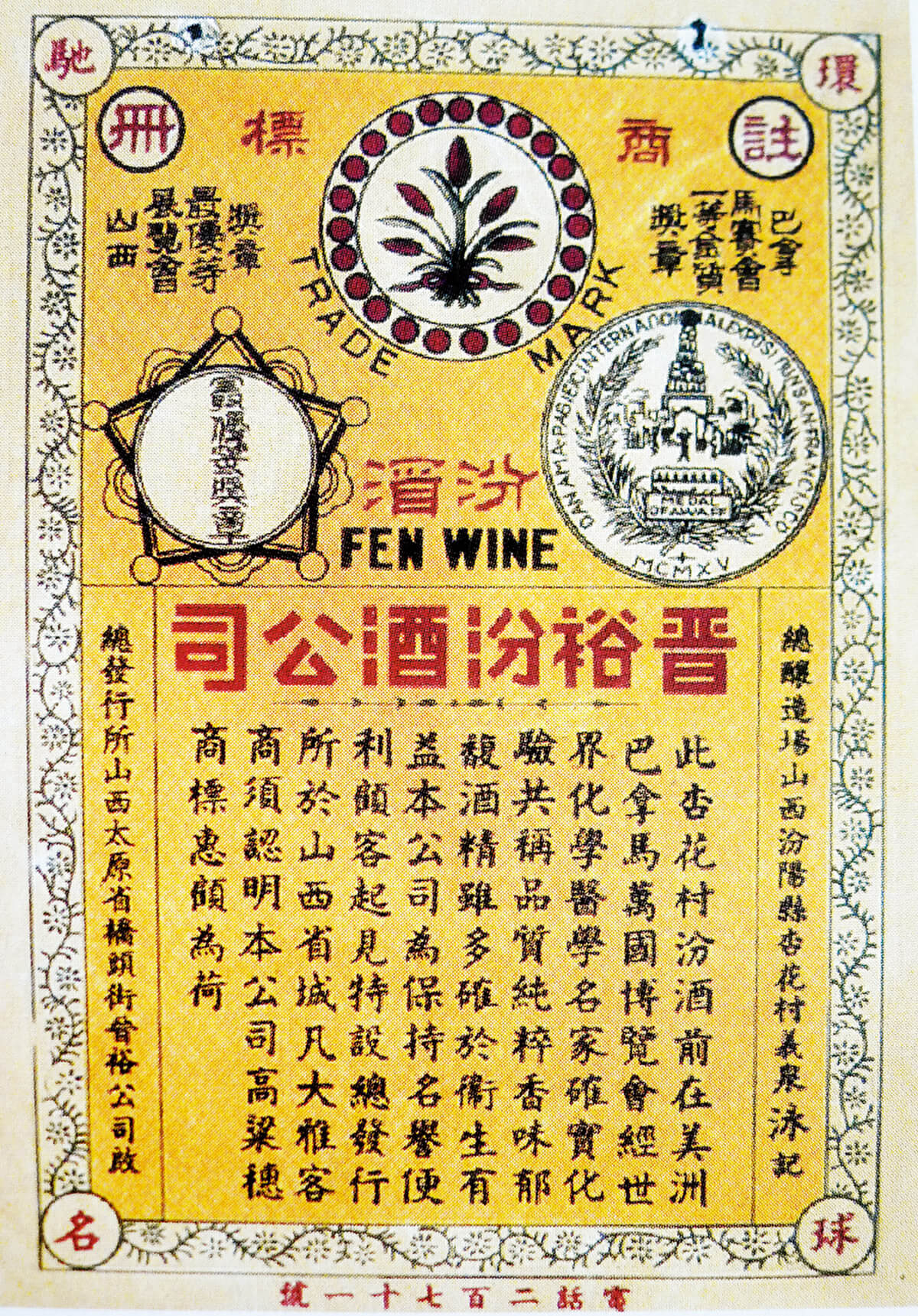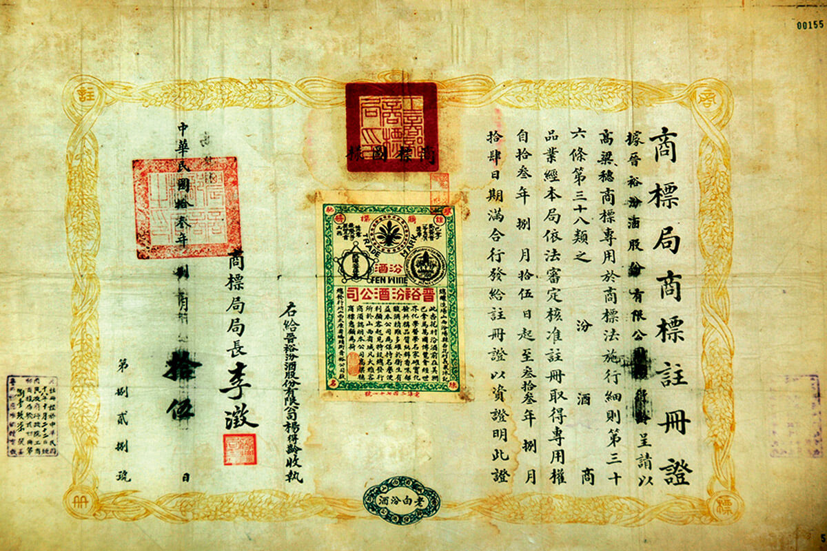 太原桥头街晋裕汾酒公司“高梁穗”商标照片(第一枚注册商标)