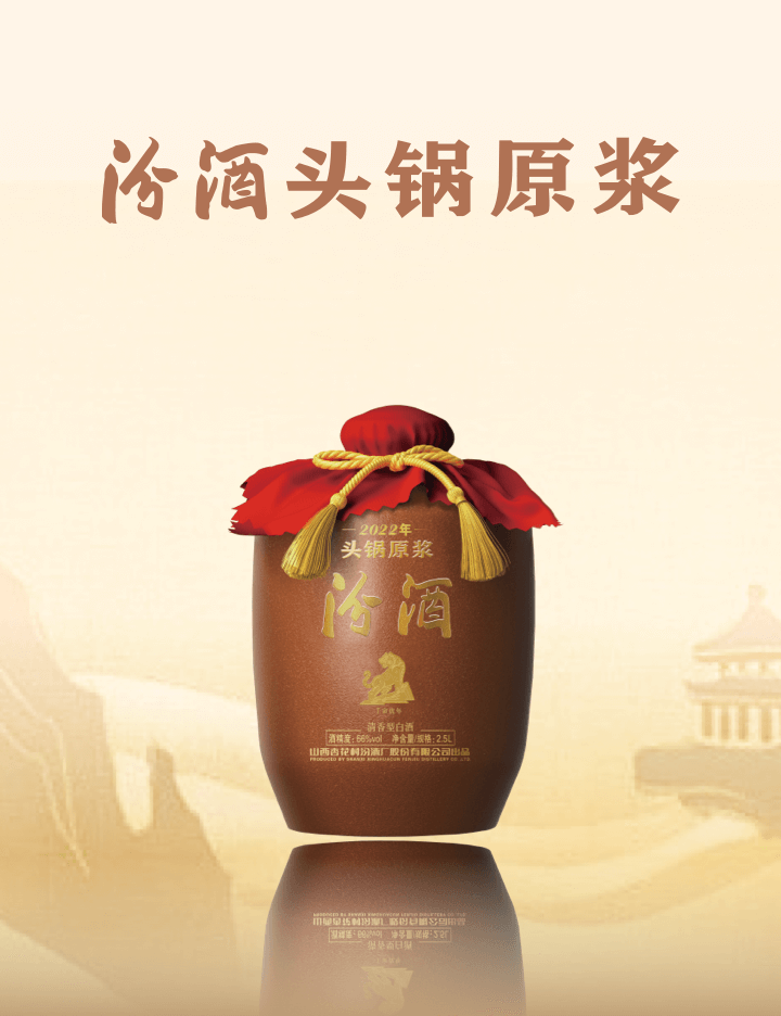 头锅原浆汾酒是汾酒厂股份公司每年秋后新生产周期开始酿造的第一锅原酒,也叫头魁酒。酒精度66度,酒质清爽甘冽,香气优雅,是原浆汾酒的精华,产量十分稀少。酒坛使用天然陶土烧制的湖南醴陵陶瓷,性能稳定,既透气又不渗漏,对酒在陈酿过程中有很好的催陈效果,并含有多种天然矿物元素,有益健康。坛身附带十二生肖民俗符号,以明确产品年份,增强了产品识别性与趣味性。头锅原浆汾酒收藏价值极高,深受广大爱酒人士及资本市场的青睐。